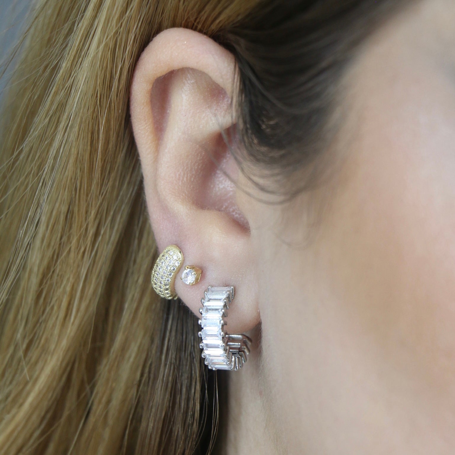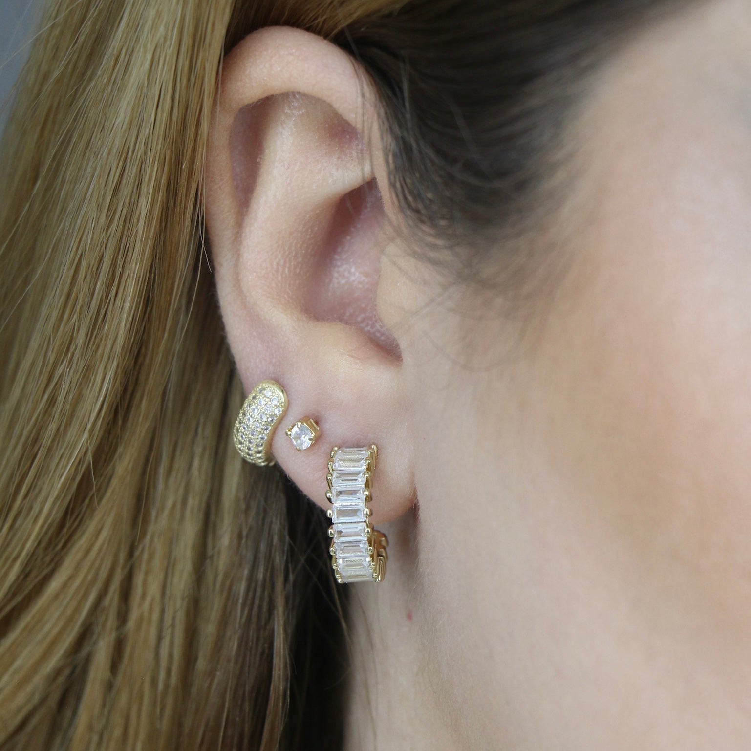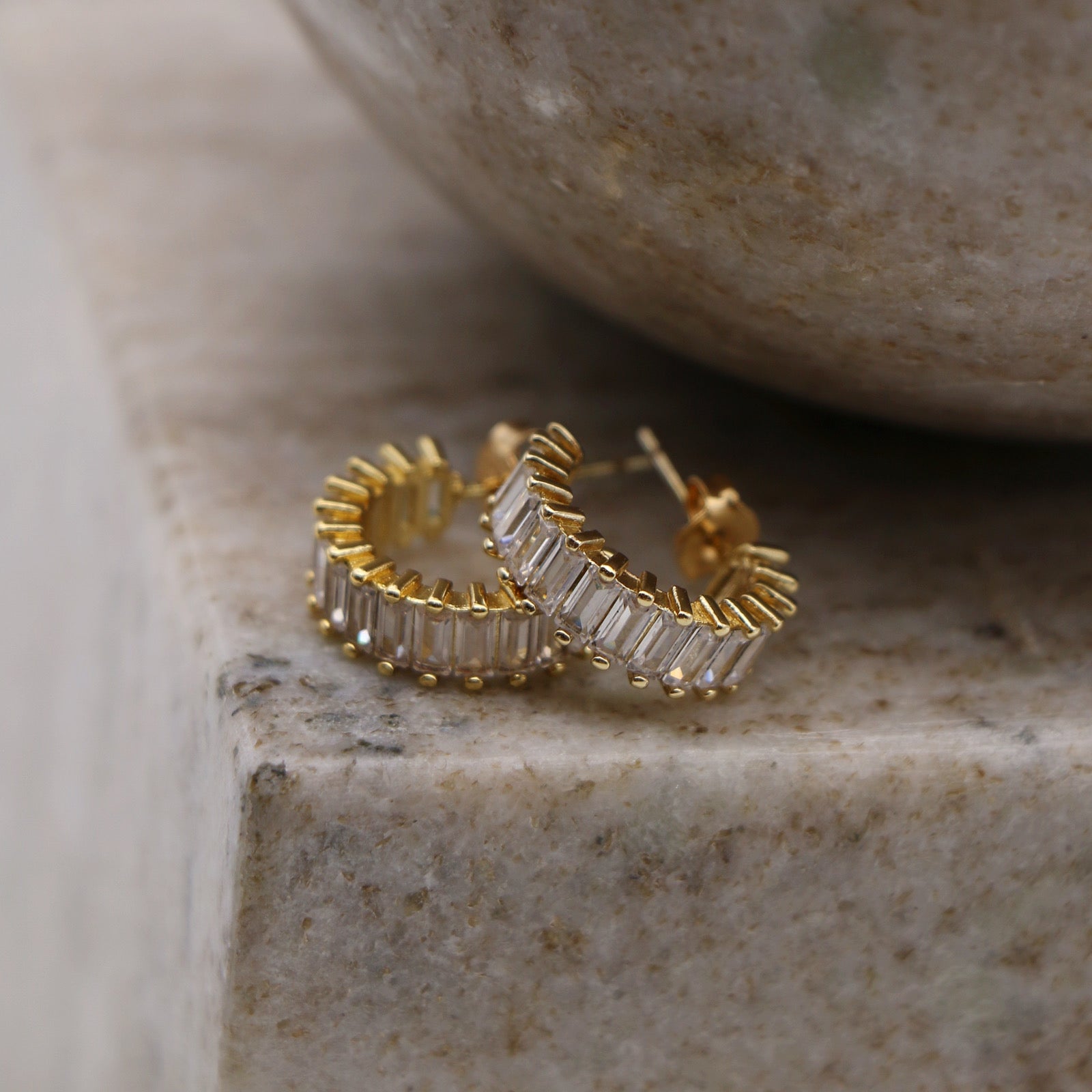 Baguette Mini Open Hoop Earrings
